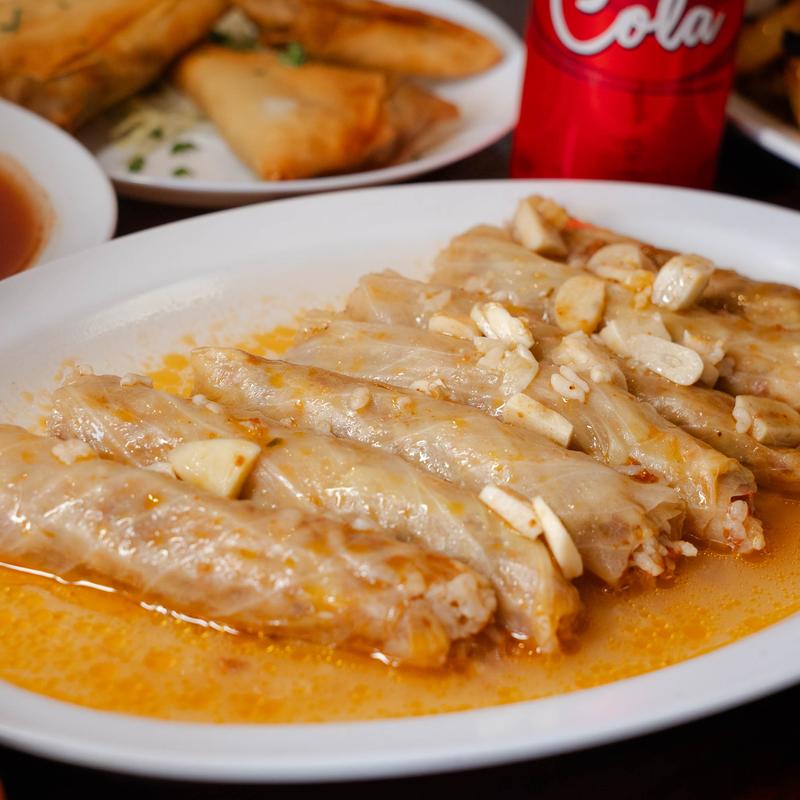 Cabbage stuffed with a mixture of ground beef, rice, tomato, mint, garlic, black pepper & seven spices.
