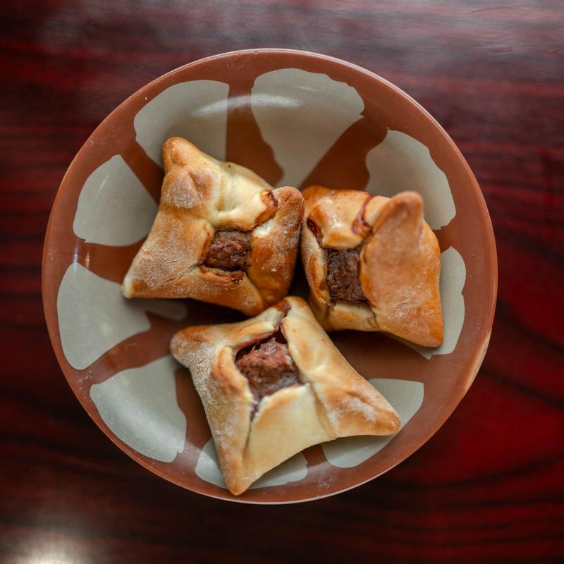 Pastry dough filled with ground beef, tomatoes, and pine nuts • 3 Pieces