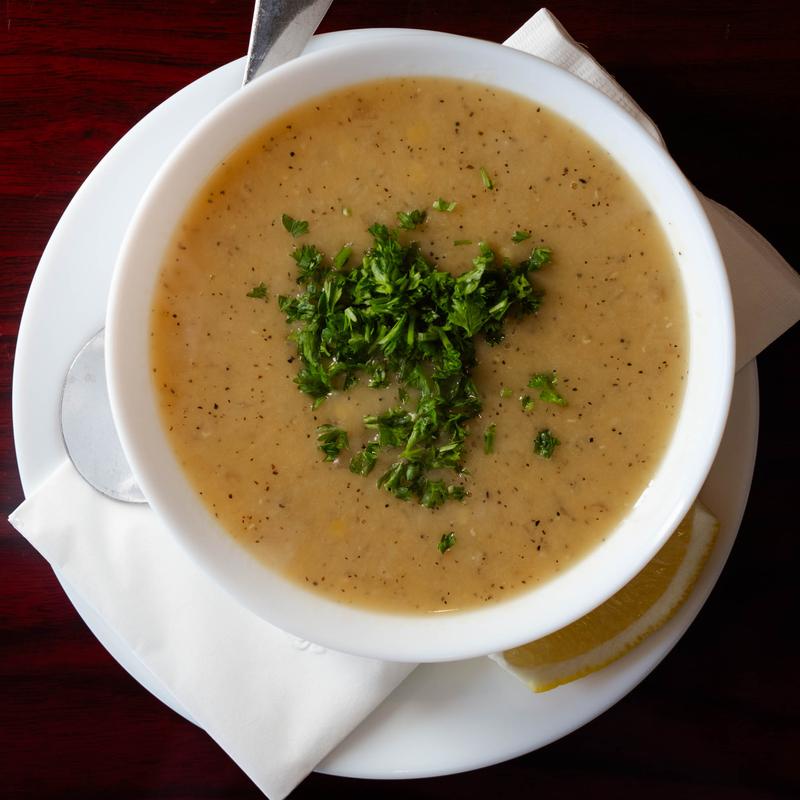 Hearty homemade soup made fresh daily. Red lentils, olive oil, onions, black pepper & lemon juice.