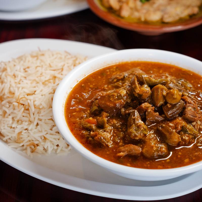Okra, beef, tomato, garlic, cumin, coriander & extra virgin olive oil.